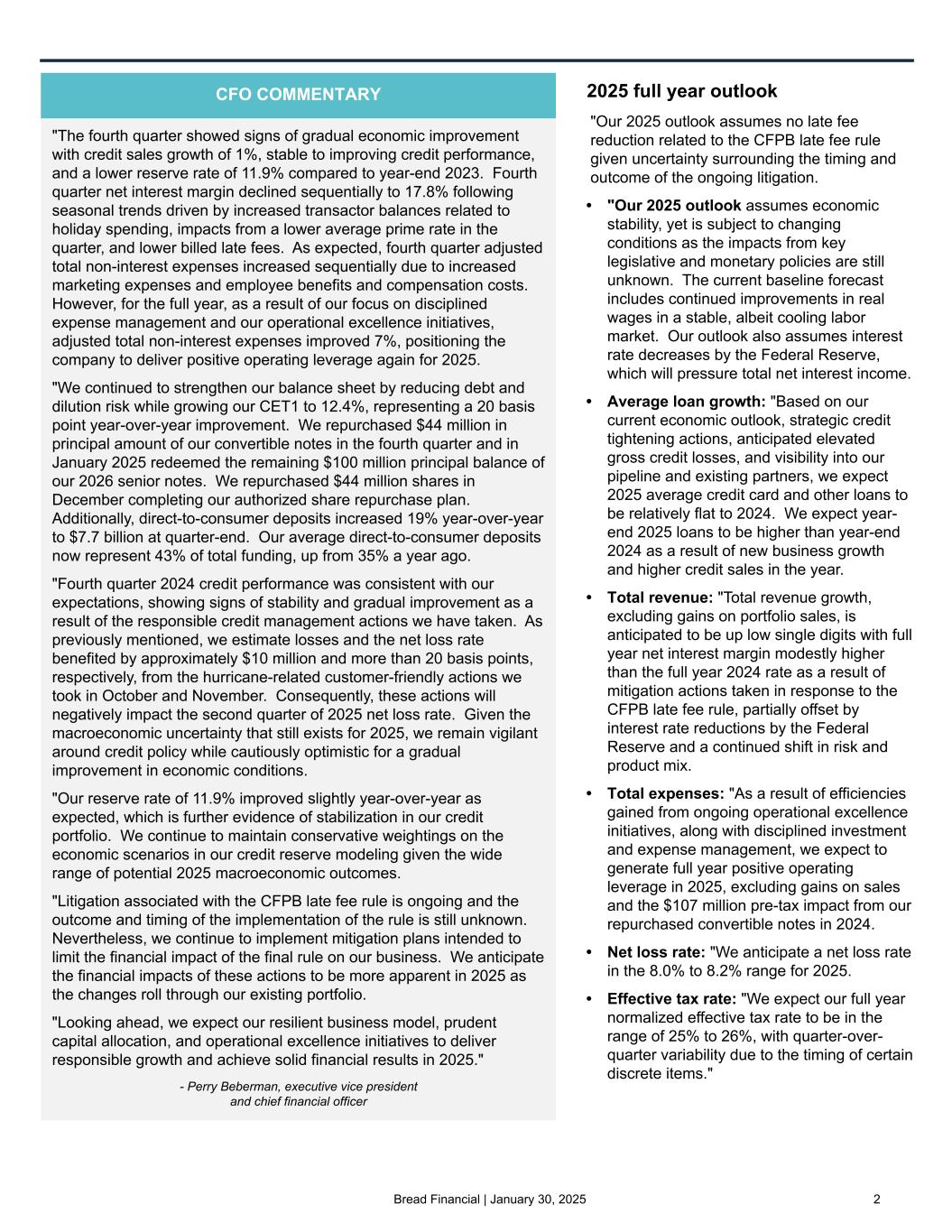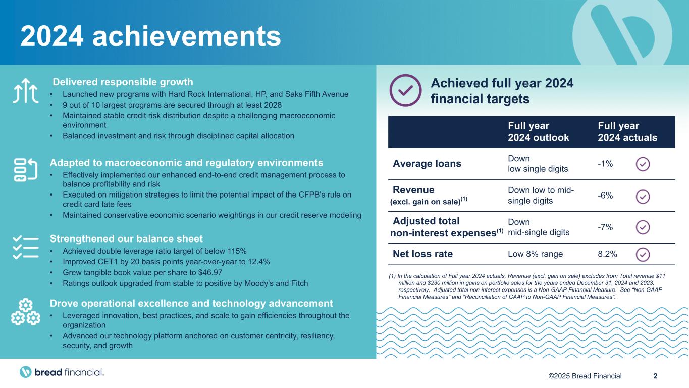 Fourth quarter and full year 2024 results © 2 0 2 2 B r e a d F i n a n c i a l | C o n f i d e n t i a l & P r o p r i e t a r y 1 January 30, 2025 Exhibit 99.2